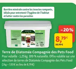 | Terre de diatomée compagnie des pets food | Maxi Zoo | 10,99 € | 8,79 € | 2,20 € Réduction | 25 février 2026 | 04 mars 2026 | |
