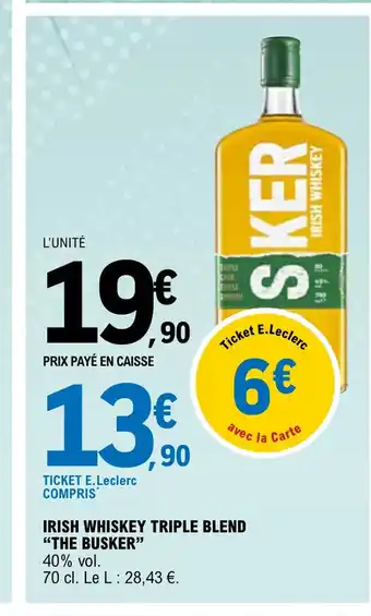 | IRISH WHISKEY "THE BUSKER" 40% vol. | E.Leclerc | 21,20 € | 15,35 € | 5,85 € Réduction | 26 novembre 2023 | 09 décembre 2023 | |