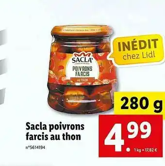 | Sacla poivrons farcis au thon | Lidl | 4,99 € | 12 juillet 2023 | 18 juillet 2023 | |||