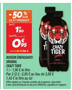 Netto CRAZY TIGER Boisson énergisante original offreCRAZY TIGER Boisson énergisante original 2 lNetto3,80 €2,85 €0,95 € Réduction24 février 202602 mars 2026