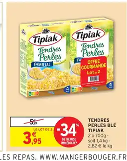 | 2 | TIPIAK Tendres perles blé 1.4 kg | Intermarché Hyper | 5,99 € | 3,95 € | -34% De Remise | 17 février 2026 | 01 mars 2026 | Voir l'offre | |