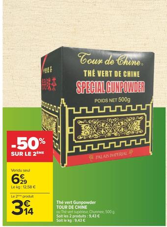 | Tour de chine thé vert gunpowder | Carrefour | 6,29 € | 3,14 € | 3,15 € Réduction | 21 août 2023 | 04 septembre 2023 | |