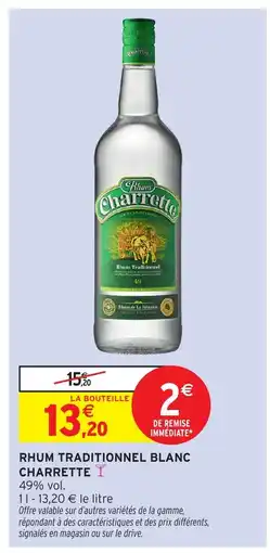 | 1 | CHARRETTE Rhum traditionnel blanc 1 l | Intermarché Express | 15,20 € | 13,20 € | 2,00 € Réduction | 03 mars 2026 | 15 mars 2026 | Voir l'offre | |