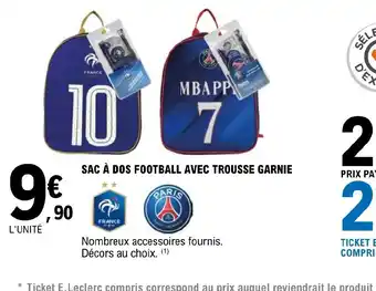 | SAC À DOS FOOTBALL AVEC TROUSSE GARNIE | E.Leclerc | 9,90 € | 06 juin 2023 | 24 juin 2023 | |||