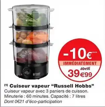 | Russell hobbs cuiseur vapeur | Monoprix | 40,99 € | 39,99 € | 1,00 € Réduction | 08 novembre 2022 | 20 novembre 2022 | |
