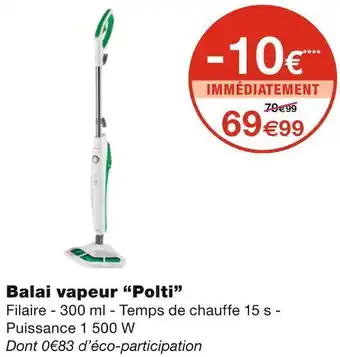 | Polti balai vapeur | Monoprix | 79,99 € | 69,99 € | 10,00 € Réduction | 01 juin 2022 | 19 juin 2022 | |