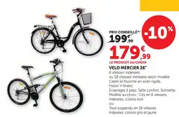 | Mercier vélo 26 city | Super U | 199,99 € | 179,99 € | 20,00 € Réduction | 28 avril 2026 | 24 mai 2026 | |