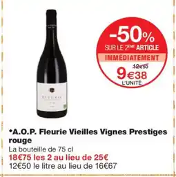 | 1 | A.O.P. Fleurie Vieilles Vignes Prestiges rouge 75 cl | Monoprix | 12,50 € | 9,38 € | 3,12 € Réduction | 24 mars 2026 | 06 avril 2026 | Voir l'offre | |
