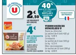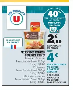 | 2 | Viennoiseries surgelees u 420 g | Super U | 4,00 € | 2,50 € | 40% SUR LE 2ÈME | 13 janvier 2026 | 25 janvier 2026 | Voir l'offre | |