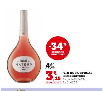 | Vin du portugal rose mateus | U Express | 4,80 € | 3,15 € | 1,65 € Réduction | 22 août 2023 | 03 septembre 2023 | |