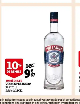 | Vodka POLIAKOV 70 cl | Auchan | 11,30 € | 10,17 € | 10% | 08 avril 2025 | 21 avril 2025 | |