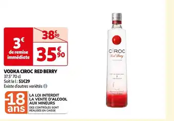| VODKA CIROC RED BERRY | Auchan | 39,00 € | 36,00 € | 3,00 € Réduction | 12 septembre 2023 | 17 septembre 2023 | |