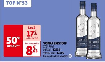 | ERISTOFF Vodka 37.5° 37,5 cl | Auchan | 12,29 € | 7,37 € | 40% SUR LE 2ÈME | 02 septembre 2025 | 14 septembre 2025 | |