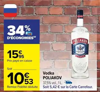 | POLIAKOV Vodka 1 l | Carrefour | 15,90 € | 10,49 € | 34% D'ÉCONOMIES | 29 octobre 2024 | 11 novembre 2024 | |