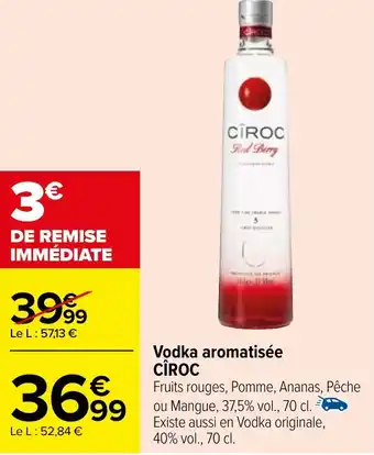 | CÎROC Vodka aromatisée 70 cl | Carrefour | 39,90 € | 36,90 € | 3,00 € Réduction | 07 avril 2025 | 21 avril 2025 | |